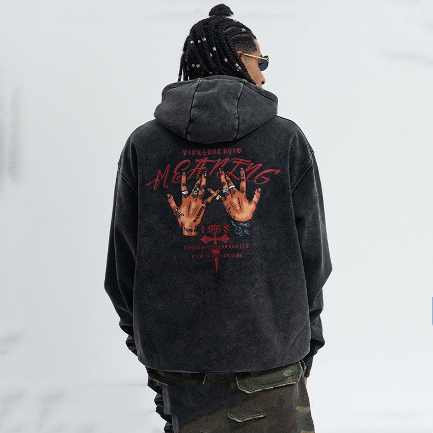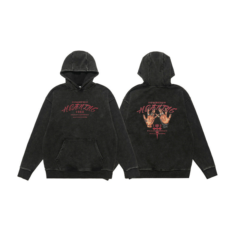 American Street Letter Printed Washed Distressed Sweater