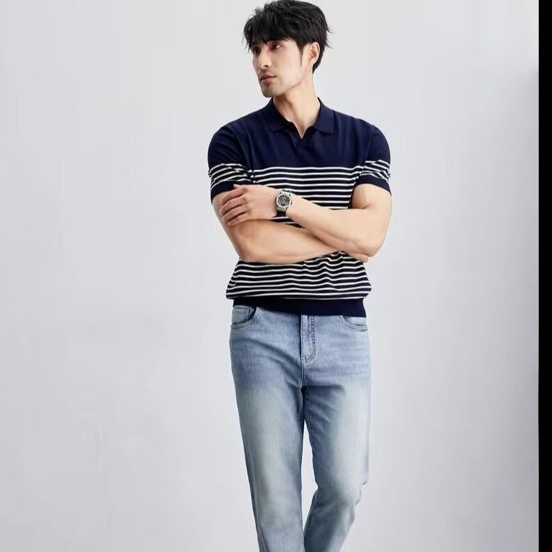 Ice Silk Sweater Plus Size Striped All-matching Short Sleeve