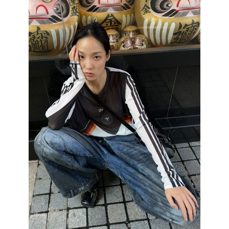 Retro Distressed Washed Reverse Waist Jeans
