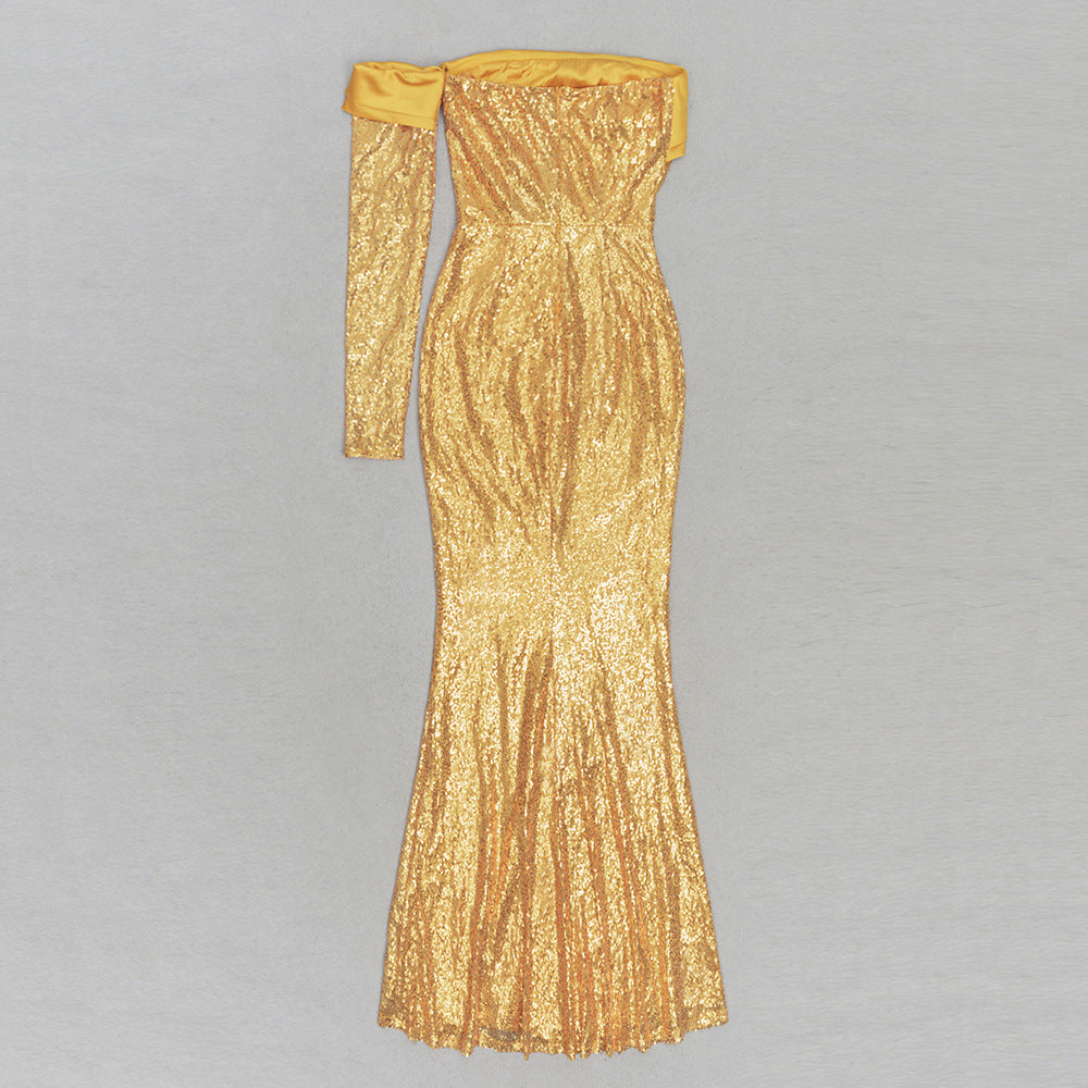 Yellow Elegant Fashion Off-shoulder Dress
